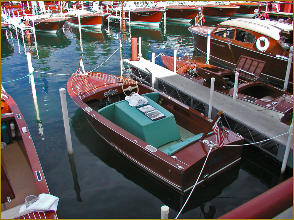 1955 21' Chris Craft Capri: This boat was delivered to the Lake Mead Marina Las Vegas, Nevada in Dec. of 1954. She is the fifth Capri built. She was used for a casino boat at Lake Mead and Lake Tahoe. When purchased the boat was a victim of a very poor restoration attempt. After a two year restoration she took 2nd in her class at the Tahoe Boat Show in 2010.